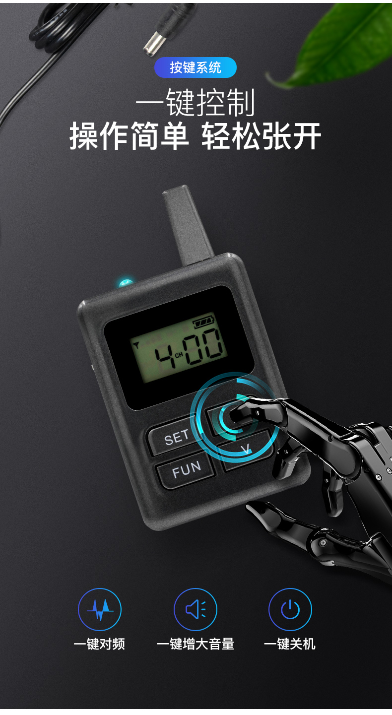 3.領(lǐng)導(dǎo)接待,兩人同講重要場(chǎng)合領(lǐng)導(dǎo)接待,只需多加一只麥克風(fēng),便可實(shí)現(xiàn)講解員與領(lǐng)導(dǎo)同時(shí)講解。接待過(guò)程更為順暢。